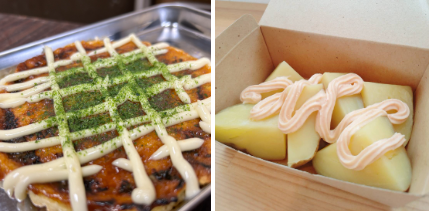 Enjoy our delicious okonomiyaki loaded with fresh green onions grown and harvested in local Kawabe-Yuwa!
