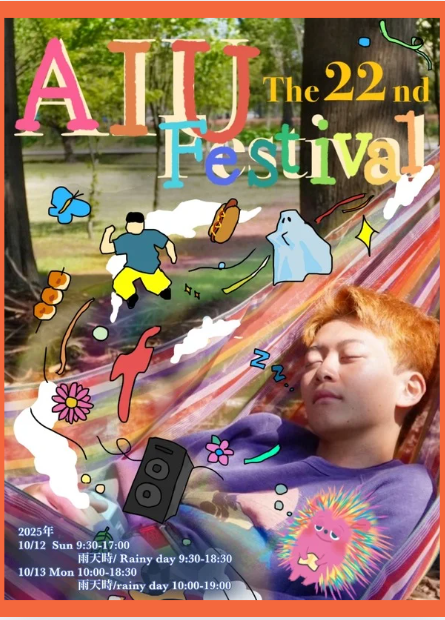 “VIVID” means “bright,” “lively,” and “radiant,” and it reflects our hope that each and every student will fully express their own individuality and talents, making the entire AIU Festival icolorful and full of energy! Also, when you hold up two fingers, it forms a “V” ✌️—and with two “V”s in “VIVID,” this theme is also a perfect symbol for the 22nd AIU Festival!